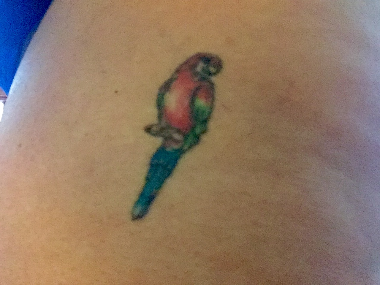 On my upper left thigh, I have a parrot. This is my nod to being a Parrothead.